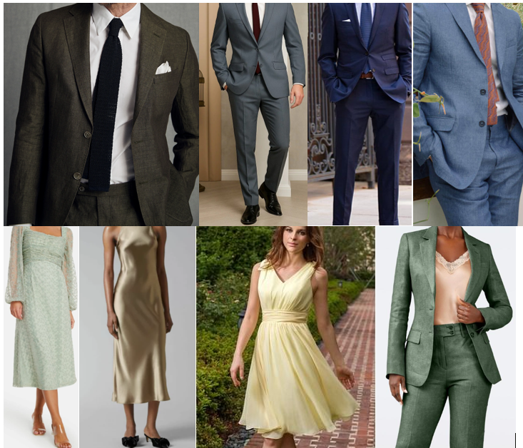 För klänningar innebär det att det ska vara elegant, men finns inget krav på att vara super formellt. Klänning ska åtminstone gå ned till låren, men den får också vara golvlång.